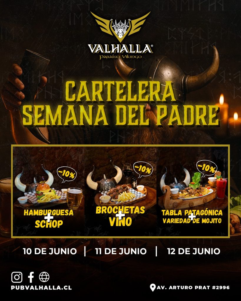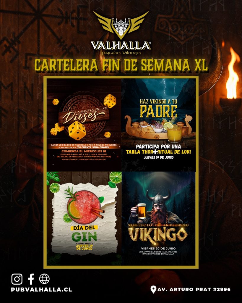 Este jueves 19 honra a tu padre como merece: al estilo de los verdaderos guerreros nórdicos. Participa por una poderosa Tabla Thor + El Ritual de Loki y haz que tu viejo viva una noche inolvidable. ¿Cómo participar? Comparte la imagen del post en tus historias Etiqueta a @valhalla_pub ✨ ¡Estás dentro del sorteo automáticamente! […]