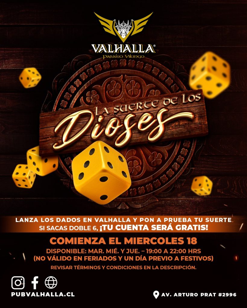 Este miércoles 18 comienza un nuevo ritual en El Paraíso Vikingo:Al pedir la cuenta, tendrás la oportunidad de lanzar los dados 🎲Si logras sacar doble 6, los dioses te favorecen con una recompensa digna de los salones del Valhalla: ¡tu cuenta será completamente GRATIS! 🍻🔥 📅 Disponible todos los martes, miércoles y jueves (hábiles).⏰ De […]