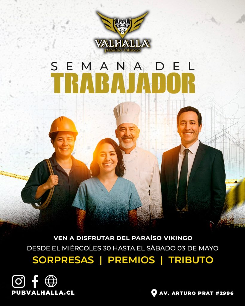 Hoy rendimos honor a quienes luchan cada día con coraje y constancia. 💼🔥En Valhalla celebramos a todos los trabajadores con buena música, cerveza fría y el mejor ambiente vikingo. 🛡️🍺 ⚠️ ¡Prepárate! Esta semana llegan grandes sorpresas en el Paraíso… 👀 #DíaDelTrabajador #Valhalla #ParaísoVikingo #CelebraComoUnVikingo #TrabajoYHonor #1DeMayo #Iquique