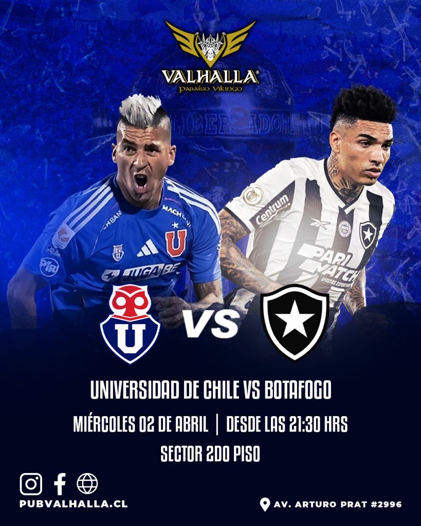 El Romántico Viajero se mide ante el actual campeón de América en un partidazo que promete pura emoción. ⚔️ 🆚 Universidad de Chile 🆚 Botafogo📅 Miércoles 02 de abril⏰ Desde las 21:30 hrs 🏆 ¡Vive la pasión de la CONMEBOL LIBERTADORES! 🏆 VamosLaU #Sudamericana2024 #HinchaAzul #UdeChile #FútbolSudamericano #PasiónAzul